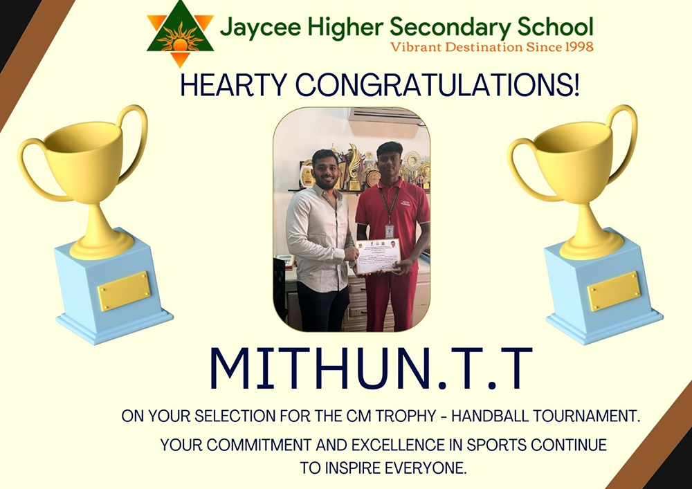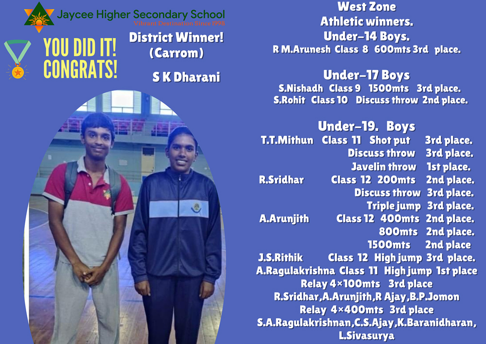 Thirukkural Oratorical - State level - “Thirukkural Thilagam” Poem Recitation - District level - 2nd Prize Bharathiyar Kavithai - District level - “Bharathiyar Voice”